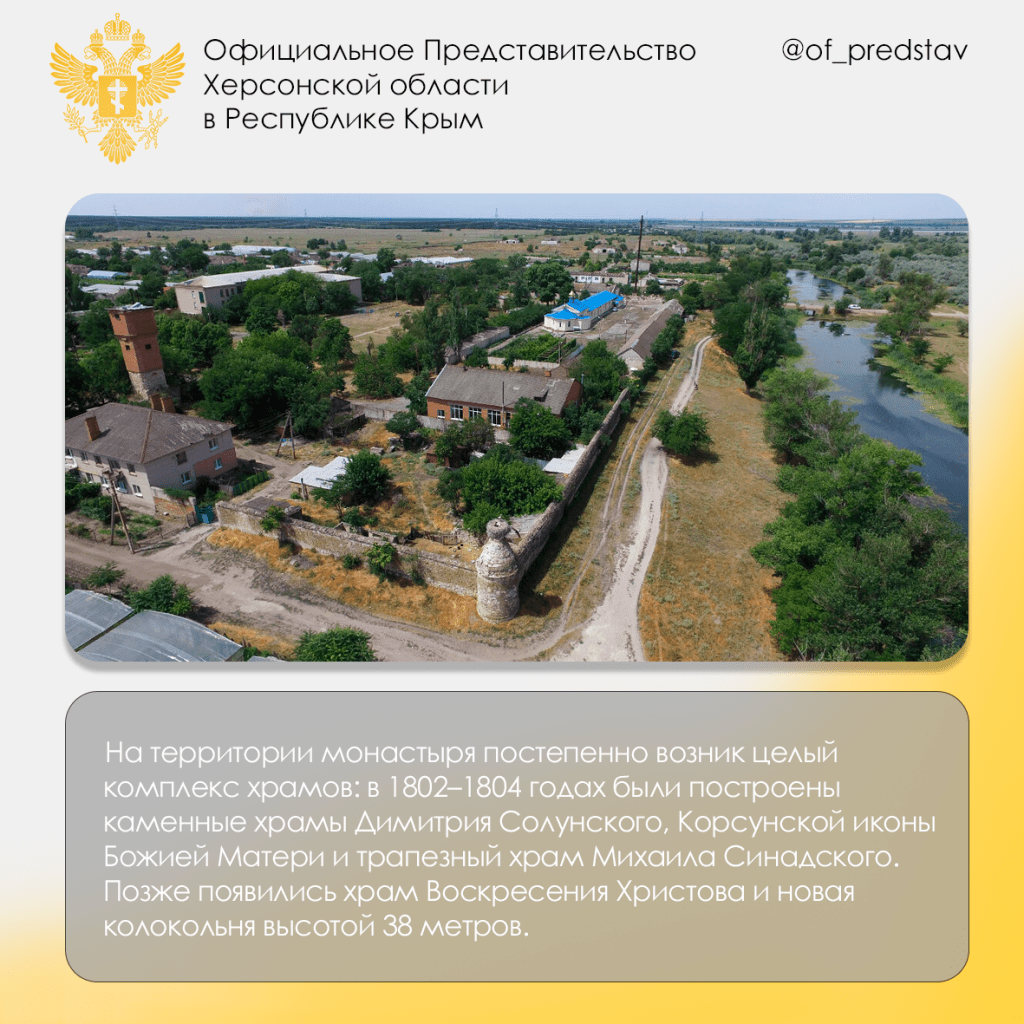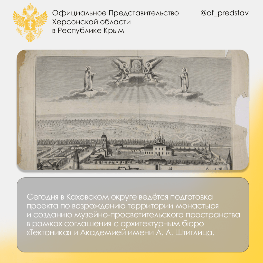 Сегодня в Каховском округе ведётся работа над проектом возрождения Корсунского монастыря. Администрация округа заключила соглашение с архитектурным бюро «Тектоника» и Академией имени А. Л. Штиглица для создания музейно-просветительского пространства на территории обители. Проект направлен на сохранение исторической памяти и находится на подготовительном этапе.