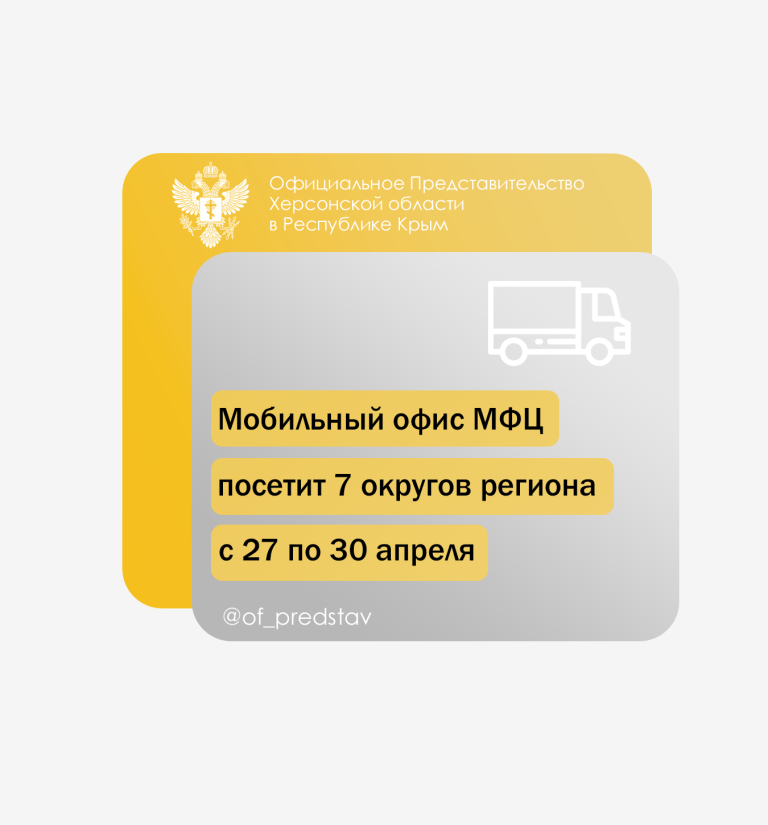 Специалисты проведут приём граждан в населённых пунктах, где отсутствуют стационарные отделения МФЦ, а также на дому — по заявкам маломобильных жителей Херсонской области.