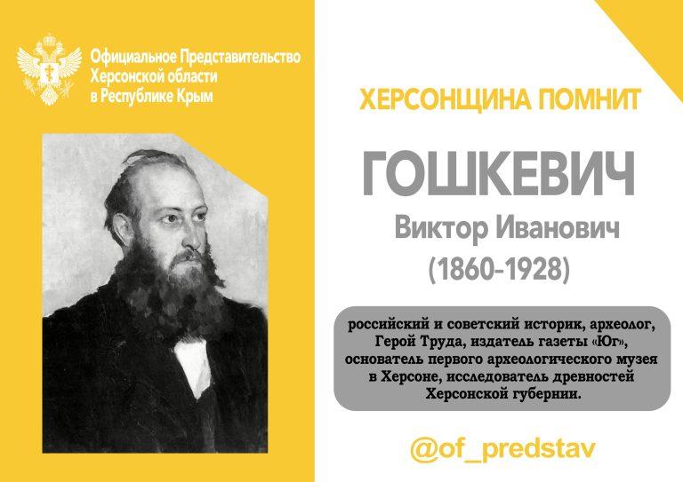 Виктор Иванович Гошкевич — российский и советский историк и археолог, Герой Труда. Родился в Киеве в семье преподавателя философии. Значительная часть его научной и организационной деятельности была связана с Херсоном и Херсонской губернией.