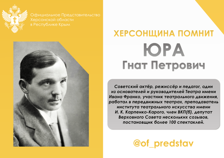 Гнат Петрович Юра оставил значительный след в истории театрального искусства как актёр, режиссёр и педагог, связавший свою деятельность с развитием сценической культуры и театрального образования.