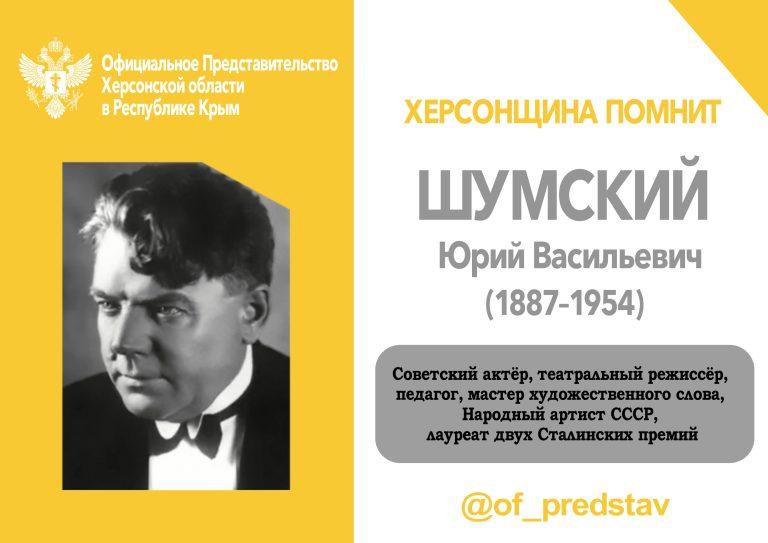 Юрий Васильевич Шумский родился 5 ноября 1887 года в Тирасполе Херсонской губернии. После переезда семьи в Херсон учился в классическом городском училище, откуда был отчислен в 1906 году за участие в революционной деятельности. С 1906 по 1917 год работал конторщиком-бухгалтером управления работами Херсонского порта.