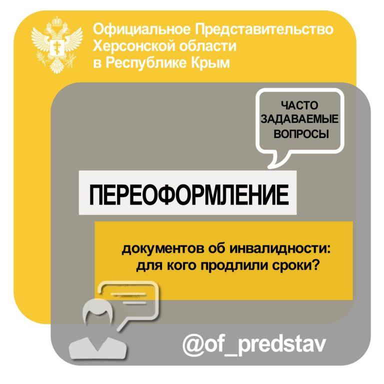 В Министерстве здравоохранения Херсонской области сообщили о продлении срока действия документов, подтверждающих инвалидность или степень утраты профессиональной трудоспособности, выданных на территориях ДНР, ЛНР, Запорожской и Херсонской областей, а также Украины.